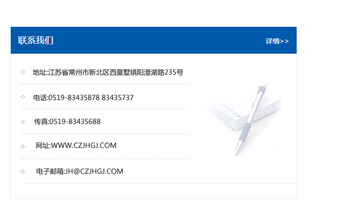傳真:0519-83435688    郵編:213135    網址:WWW.czjhgj_com.daxinglengku.com    電子郵箱:JH@czjhgj_com.daxinglengku.com